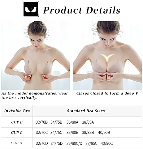 [Super Sticky Bra]: The inner layer of the strapless bra is made of a high-strength silicone gel, it keeps your breasts in a comfortable position without the worry of falling out. When you take it off, it won’t cause any pain or residue on your skin, making it a very skin-friendly silicone bra.