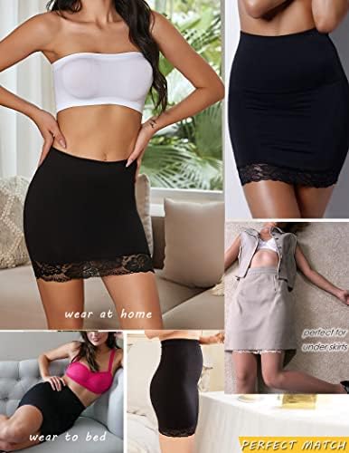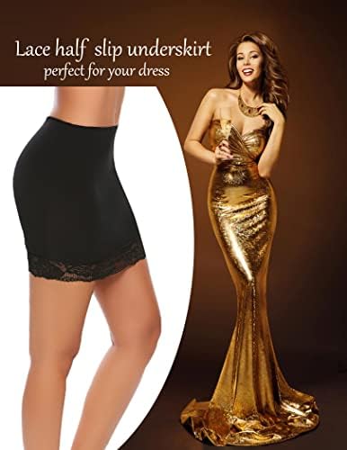 Design: These half slips for women sleepwear featuring elastic waist band, lace-trimmed hem, and smoothing stretch fabric.Secure fit that won’t ride up throughout the day