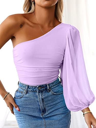 This one shoulder bodysuit for women feature with long sleeve design and one shoulder,sleek form-fitted, team this bodysuit with denim jeans and kicks for a cool everyday vibe.