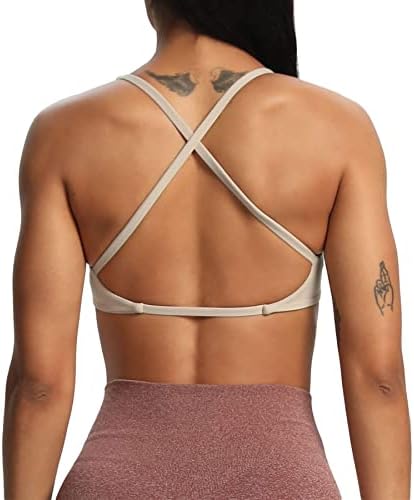 The Sienna twist womens sports bra featuring thin crossed back straps and padding, despite small straps, it doesn’t bite into your traps and cause neck pain