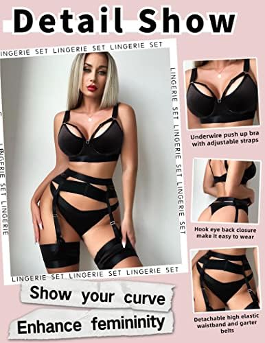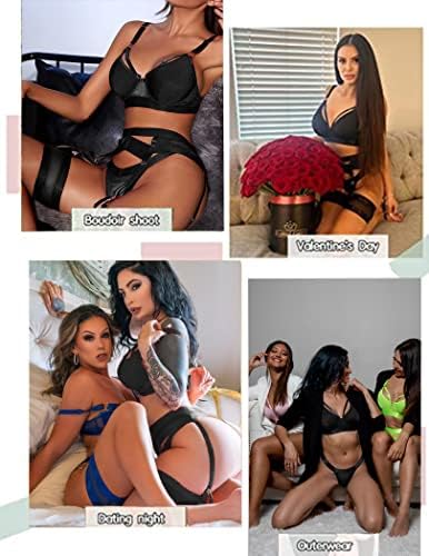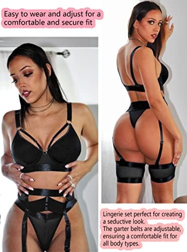 ✿Style: Bondaged Lingerie Strappy 4 Piece Lingerie Set comes with a matching g-string panty and a unique belt and garter belts, perfectly enhance femininity and show your curve, making you more charming. The bra hugs perfectly. No spillage or slips.