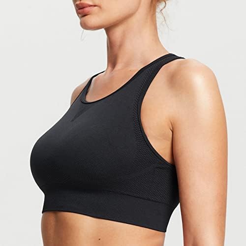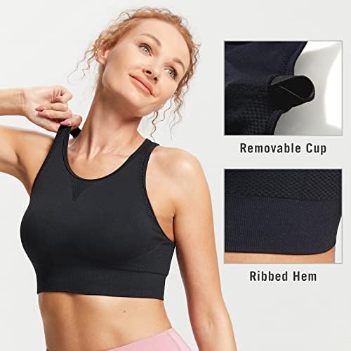 Seamless stretchy and breathable fabric offers a forgiving, non-restrictive experience, and brings you extreme comfort as the body moves. High impact racerback and wide shoulder strap, provide better protection and support. Longline and high neck design offers full coverage, this crop tops hit the mid-belly, with a knitted ribbed hem preventing the shifting during motion. These padded bras with removable cups help hold your girls in place and reduce shaking.