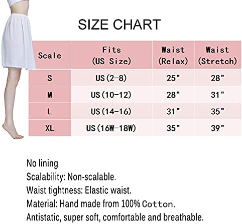 100% COTTON & HAND MADE — This half slip is hand made from 100% cotton fabric, feature with ANTI-STATIC, super soft and cooling, comfortable and breathable. It’s slightly transparent in white color and no stretchy.
