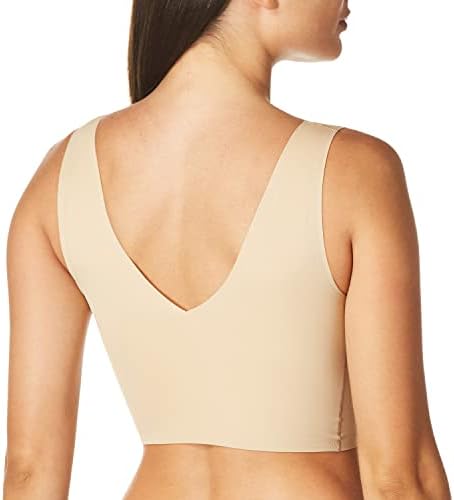Bralette style V-neck in front and back Lightly lined Solid design Seamless elastic waistband + slips-on Removable pads Logo at hem The Calvin Klein Invisibles V-Neck Bralette is a simple and sophisticated style that is perfect for daily wear.