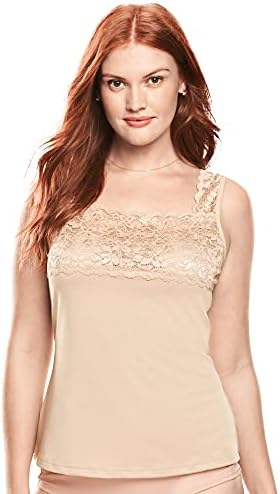 Stretch lace and a soft knit combine to make this camisole an everyday comfort basic. Relaxed fitSquare neckWide straps in stretch laceLace bodice and straps are lined23″ lengthPolyester microfiber knit, hand washImported