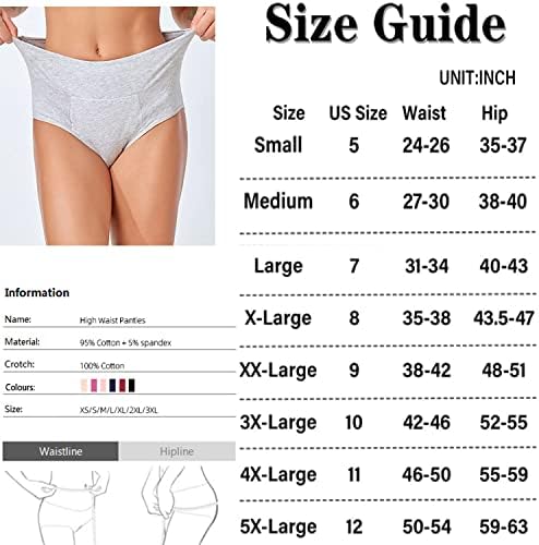 95% Cotton, 5% spandex of cotton underwear for women with High Waisted style, fabric is super comfortable, soft and skin-friendly.