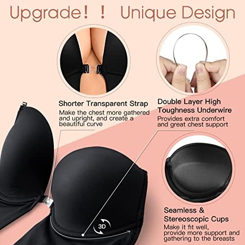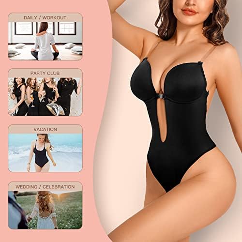 👙【Shortened Cup Connecting Straps】Shorten the length of the transparent strap between cups, make the chest more gathered and upright – a serious cleavage boost, and create a beautiful curve. This plunge backless body shaper bra with Adjustable Detachable Shoulder Straps, completely seamless and unnoticeable, lets you freely style your best look. This shapewear Bodysuit comes with another different length strap between cups for different needs.