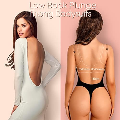 👙【Cartilage Underwire in Bra & Stereoscopic Cups】This thong shapewear for women uses cartilage to replace the underwire in Bra providing extra comfort and great chest support, preventing sagging and lifting breasts. The plunge invishaper has a 3-stage adjustment buckle under the armpit part, fit for different body types, letting you choose the way that is more suitable for you.