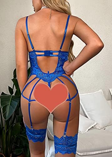 Womens Garter Lingerie Set Content: 1 X Women Lace Bodysuit with Garter Belts/1x adjustable panty/1pair thigh cuffs