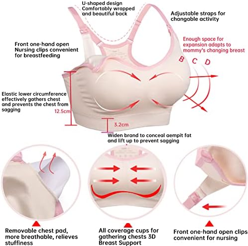 Well-Adjustment: Maternity Breastfeeding Bras features one-step feeding clasp, adjustable straps, removable padding, three rows of hooks. Flexible and sufficient extension makes the nursing bra ideally adapt to changes in breast shape, From pregnancy to childbirth to breastfeeding, you only need a bra