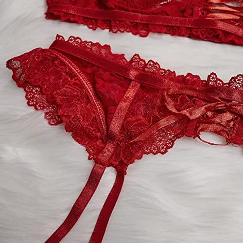 Lingerie for Women 3 Piece Lingerie Sets with Garter Belt Bra and Panty Sets Sexy Lace Bodydoll Teddy Lingerie