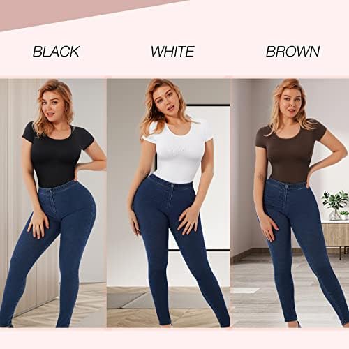 【NON-SEE-THROUGH & COMFORTABLE FABRIC】Made of 92% NYLON and 8% SPANDEX offers a soft touch and good elasticity of bodysuit top, which is inclusive enough for different body shapes and sizes. Moreover, short sleeve bodysuits for women have zero bound feeling to your body and won’t easy to deform after repeated washing.