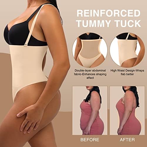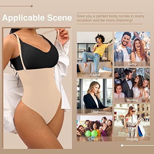 SEAMLESS AND INVISIBLE: Our thong shapewear is made of 55% Comfortable Recycled Nylon+35% Nylon+10%Spandex. It uses renewable and environmentally friendly materials- Comfortable and breathable, soft and light, seamless and smooth. So the body shaper underwear for women is invisible under any type of clothes, no visible panty lines. As well as it has no steel bones, it will not cause burden and harm to our body, you can wear it all day.
