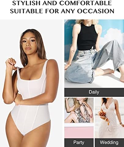 SUITABLE FOR ANY OCCASIONS & SEASONS: This Sleeveless T Shirt Tank Top suitable for any occasion, as party, evening, date, dance show, club, work, daily life ect. The shapewear bodysuit for women prefect to worn with shorts, jeans, pants, skirts, high heels, boots,suits and etc. Make you fashionable and elegant.