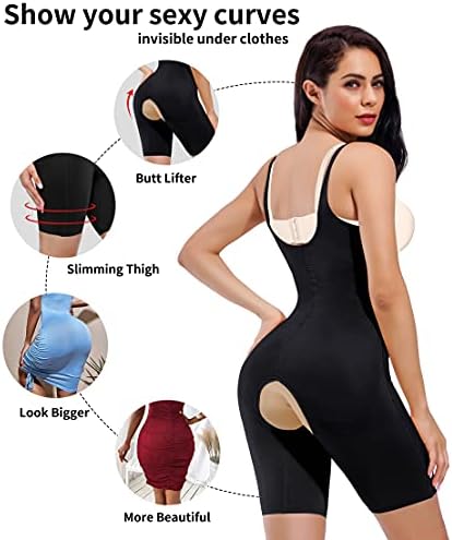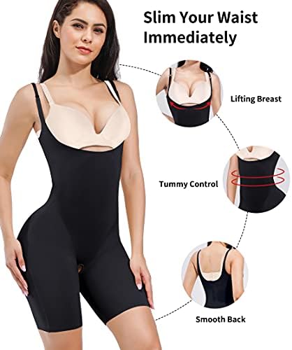 U-SHAPE OPEN BUST BODYSUITS: Special front U-type anti-droop open bust design,makes your chest more erect and attractive, effectively firm control armpit and back flabby fat to make your body no lumps or bumps. The adjustable shoulder straps can relieve shoulder pressure,reduce shoulder pain. stomach shaper for women is double layers control design on tummy area, flatten tummy with higher compression, hold your stomach in,make your abdomen smoother,gives a slimmer feminine silhouette.