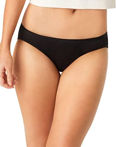 Keep your cool all day with Hanes® lightweight bikini panties in a handy stock-up 12-pack. This pure cotton and cotton-blend underwear is made with Hanes® Cool Comfort® fabric that wicks away moisture from your skin to keep you cool and dry all day. Plus the soft, ring-spun cotton is preshrunk which means the size you buy is the size they stay, wash after wash. You’ll also appreciate the ultra-plush, anti-ravel waistband that won’t pinch or bind. The silhouette is a classic bikini style with a low-rise waist, high-cut legs, and moderate back coverage, just what bikini wearers prefer. These bikini underpants have comfort leg bands that stay in place without riding up and are available in a convenient 12-pack of assorted solid and heather colors.