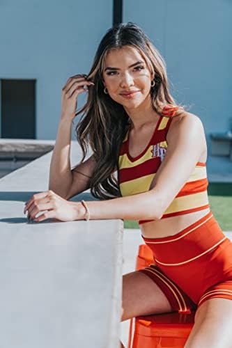 Show off your love for the Harry Potter books and movies with this stunning red and yellow Gryffindor design featuring the iconic HP logo and lion. Made from soft, breathable material with four-way stretch for maximum comfort, and advanced seamless fabric technology for a flawless fit. Plus, the butt-lifting shaping will enhance her curves and create flattering contours