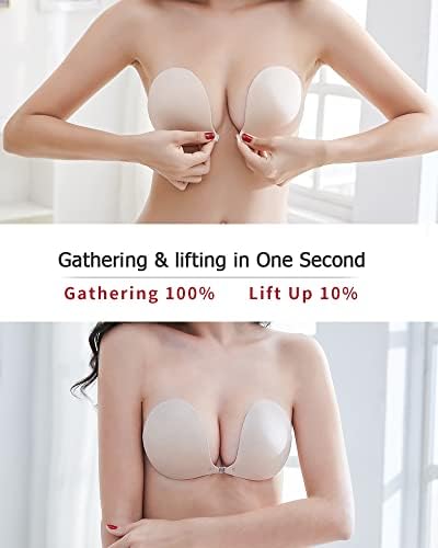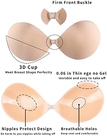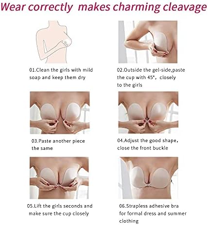 2 Making Charming Cleavage:3D Round Cup Shape Cup,Front Buckle,good lift,make charming cleavage must place the bra at an up 45°,place horizontal is wrong,if you want a good lift&push up,our new update rabbit ear sticky bra will help you which cover from A cup to F cup,you can find it in our store