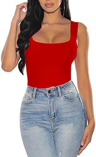 JORASOB Women Tank Bodysuits Square Neck Sleeveless T Shirt Tank Tops