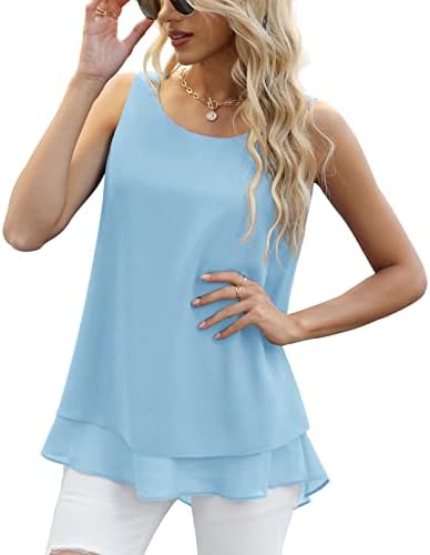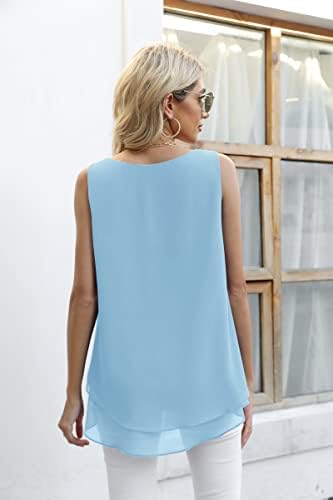 More Occasion: This women’s summer sleeveless blouses perfect for Casual Wear, Work,Party, Club, Office, School, Daily and Summer Wear.The summer tank tops have double layers chiffon design with an ultra chic look,you can layer this casual shirt under a blazer,cardigan, or wear on its own.Pair with variety of jeans, skirts, shorts