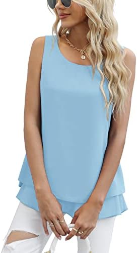 Classic Style:Women’s sleeveless blouse,womens chiffon tank tops,round neck,flowy tank tops for women,chiffon layer,double layers tank top,relaxed silhouette,loose fit,which makes you both chic and classic