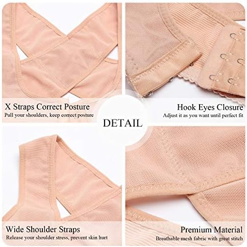 Adjustable & Compression✅—Bra support shaper with wide straps help to reduce shoulder pressure and prevent leaving tight marks. Adjustable hook-and-eye closures design allow you to adjust size flexibly, provides different level of compression you want, let the posture corrector for women under clothes fits you well.