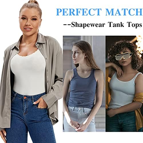 【Breathable & Stretchy, Comfortable】This cami tank tops for women shapewear is made of 92%Nylon and 8%Spandex.Microfiber and slimming inner power-mesh material of tummy control tank top shapewear is breathable, comfortable, sweat-free,ensures comfortable fit all day, with light tummy control.