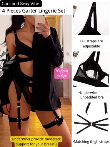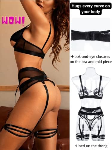 ✿Design: Thigh straps lingerie with high cut thong will highlight your legs line. Hook & eye closure and adjustable straps make it for better fit.