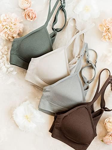 4 Pack Sport Bra Bralettes for Women (Light, Comfortable, Soft Support for Low Impact Activity or as a Lounge Bra). Wirefree design is comfy enough to be your new sleep bra or wear as a t shirt bra. These padded bralettes have removable pads. While not a full coverage bra – the demi dip in the front works well with many ladies top necklines – similar to a triangle bralette.