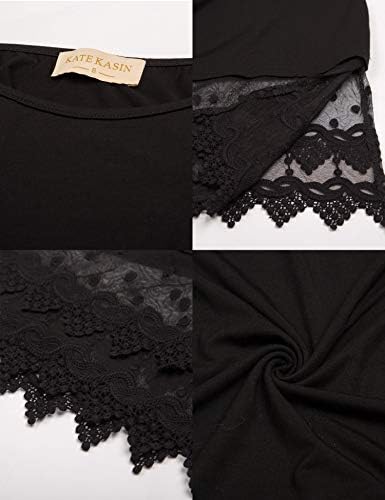 Kate Kasin lace extenders with adjustable spaghetti strap,classic round neck,solid color,side split,extender camisole and unique lace trim design.The lace extender adds a cute and elegant touch to all your outfits,such as your favorite top/jacket, an open front shrugs/cover ups,button up with legging,under a mini dress, skirts, or under a tunic or jeans.