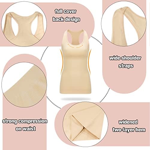 BACK SUPPORT: Full cover back design can provide more stronger support and smooth the back with wide shoulder straps. And this tank tops is long enough to cover your upper hips, widened two-layer hem is not easy to roll up.