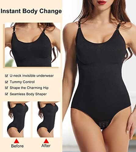【Updated Design】No compression bra design fit for all cups. The thinner 3D cutting butt area can support your buttocks. This slimming bodysuit sucks you in and shapes the C-curve between your waist and hip. 3 small snap closure at crotch for easy maneuvering, which is very convenient when going to the bathroom. The Sleeveless sling design are more inclusive, allowing you to be elegant and it is invisible under all kinds of outerwear, perfect for all season.
