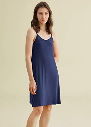 Classic style v-neck cami dress in solid color, with adjustable spaghetti straps, flattering at the upper part, flowing on the bottom, casual and comfortable, suitable for home wear, also can be used as a slip under clothes to go outside.