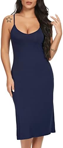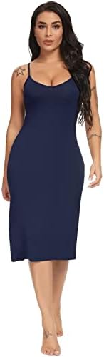 The full slips for under dresses features sleeveless, v-neckline, adjustable spaghetti straps and cover knee length.