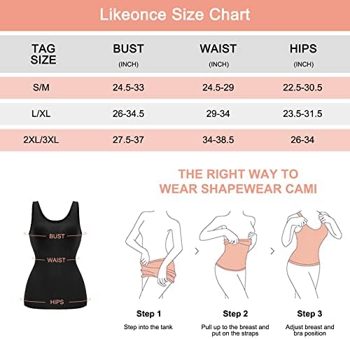 SHAPING WAIST & TUMMY CONTROL:The side waist of Likeonce women’s tanks & camis is made of special fabric with reinforced pressure to hide love handles and shape waist. But the fabric compression in abdominal area is stronger than breast and lighter than side waist. This design allows for tummy control and ensures that you will not feel any discomfort when you wear this womens camisole tank tops all day.