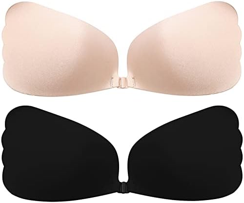 Our adhesive bra set provides two colors-Black Backless Bra(suits for dark clothes) and skin backless bra(suits for light colored clothes)so you can match clothes better according to your needs.WARM TIPS: Too much sweat will affect the effectiveness of the adhesive, so the sticky bra is not suitable for using in high temperature outdoors or doing exercise.If you have any problem on use it, please contact us and we are willing to listen to your voice.