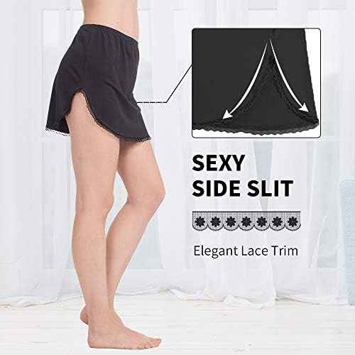【CURVED SIDE SLIT】The elegant lace side slits of our womens half slip are curved to prevent showing peak under dresses. The above knee length short slip featuring elastic waistband provides super ease of movement.