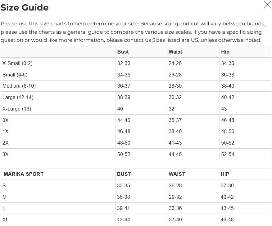 The original women’s fitness brand. Marika was founded in San Diego, California in 1982. We are an active lifestyle brand specializing in patented Shape-Enhancing products for the gym and beyond. No matter what the day holds, we’ve got you covered.Bust: For bust size, measure around your chest at the fullest point of your breast.