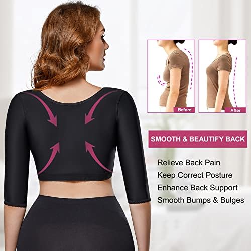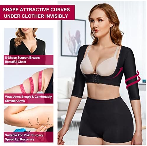 【PUSH-UP BREAST & ADJUSTABLE FRONT CLOSURE】U-shape underbust design without pads and wires ensure maximum comfort, helps to support and gather breasts to center, give you attractive chest. The arm compression garments after lipo with 4 rows hook & eye closure, easy to put it on & off, allow you to adjust the compression levels and get the best fit during post-operation recovery.