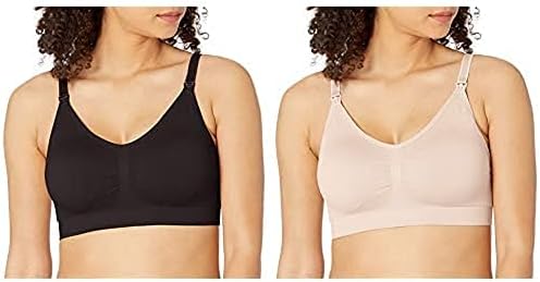 Motherhood Maternity Women’s Maternity Full Busted Seamless Clip Down Nursing Bra, black/blush Two Pack, Large