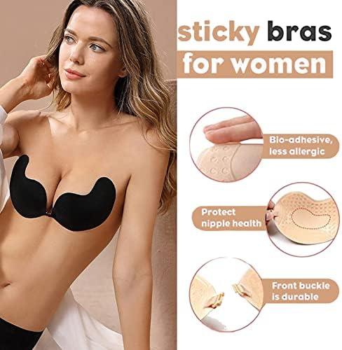 [Skin-Friendly Adhesive Bra] – Our backless strapless sticky bra contains a biological gel that promotes stronger adhesiveness, making droopy boobs a worry of the past. Skin-friendly silicone silica gel grips the delicate skin of the breasts without irritation and itching, good stickiness will not cause any pain or leave any sticky residue when peeled off.