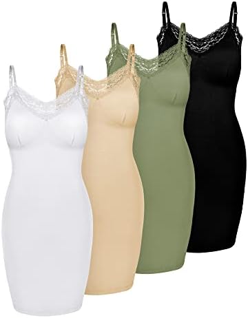 What You Get: the package contains 4 pieces of cami dress, including 4 different colors of black, white, olive green and skin color, the quantity and color are enough to meet your daily use and replacement needs, you can also share them with your friends