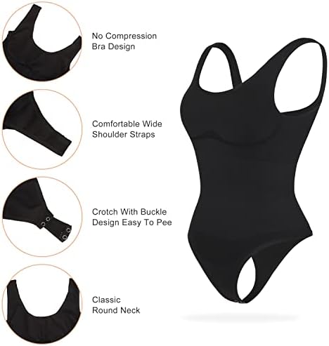 【SUITABLE FOR ANY OCCASION】The slimming bodysuit suitable for any occasion and seasons. This women’s shapewear bodysuits can be worn as a basic bodysuit or a normal clothing outside, it helps to keep clothes from curling and keeps the abdomen area flat, which goes well with jeans, shorts, skirts, skinny pants, suits and etc. Perfect for daily wear, and fit for office, party, club and travel in the meanwhile. Make you fashionable and elegant.