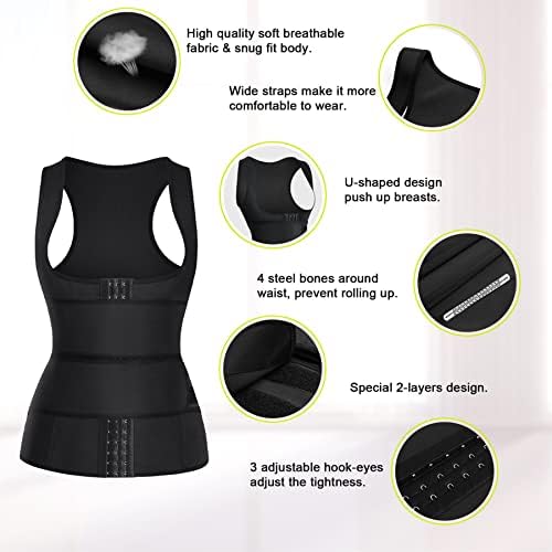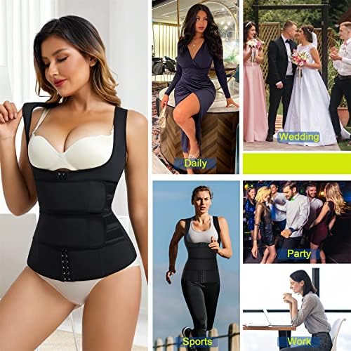 COMFORTABLE BREATHABLE MATERIAL. The waist trainer vest is made of 90% Polyester, 10% Spandex, has good elasticity and resilience, reshape the slim waist line under low-cut blouse, dress or clothes. With the soft, breathable and comfortable fabric designed, this tummy control shapewear makes you look more attractive on any occasion. Suitable for all skin types in all seasons, without any allergic or oppression.