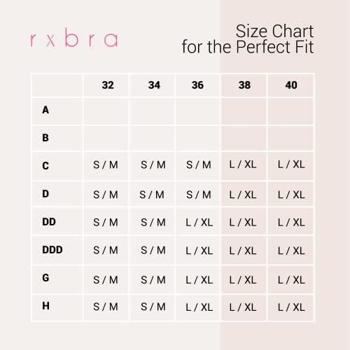 SIZING & WASHING INSTRUCTIONS: Size Small/Medium fits 32C, 32D, 32DD, 34C, 34D, 34DD, 36C and 36D. Size Large/X-Large fits 38C, 38D, 38DD, 38DDD, 40C, 40D, 40DD and 40DDD. Washing Instructions: The first time you wash the RxBra, wash it by itself, cold on gentle cycle, and hang dry. Each RxBra comes with a bra washing mesh bag to keep your bra from snagging on other garments in the washer.