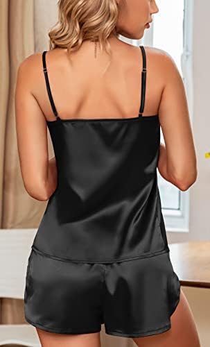 Unique Design —— This cami PJS set features v-neck,low cut,adjustable straps,sexy short booty shorts, 2 side slits. women cami pajama shorts set shows off your body curves in nice coverage way.