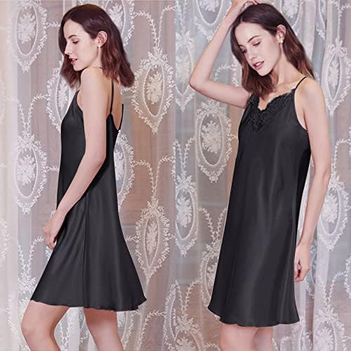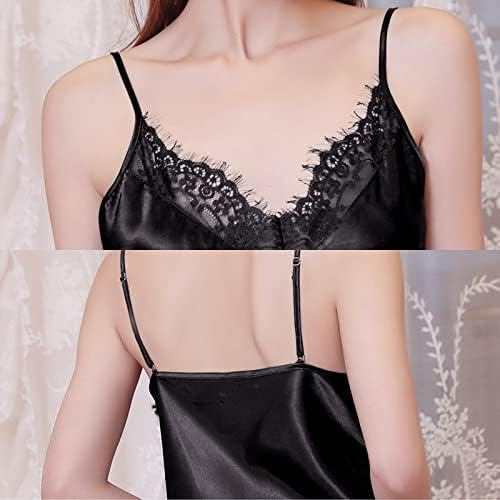 Satin Nightshirts Sexy Nightdress Spaghetti Strap Negligee Nightgown Chemise Slip with Deep V Neck