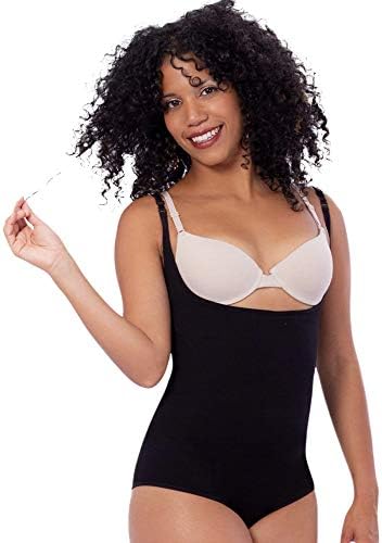 WIDE TANK STRAPS Our open bust Bodysuit features two high-elastic wide strips with anti-slip technology to stay-in-place without putting stress on your shoulders. Effortless to pull on, the brief cut lifts the butt while the 360-dress design slims every angle and the straps keep it all in place.