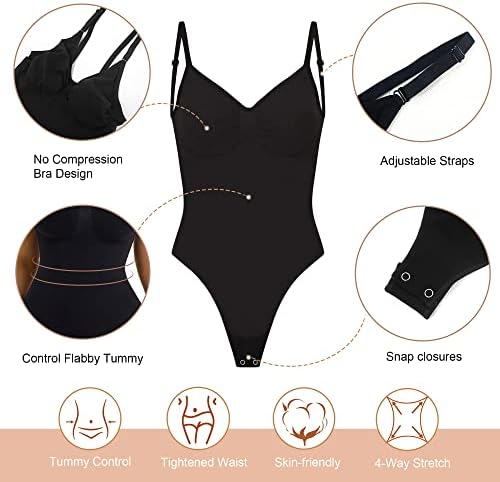 No Compression Bra Design: Adjustable straps and no compression bra design fit all cups. Snap closure at crotch for easy maneuvering.Low back fit and thong back make it the perfect backless shapewear piece.