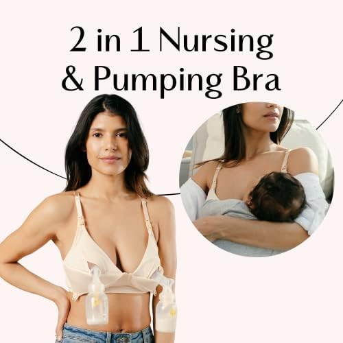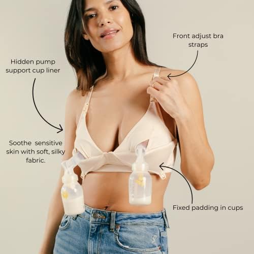 IDEAL FOR NURSING AND PUMPING || No need to undo multiple clasps to breastfeed. Our unique, patented clasp design is easy to use. Undo the upper portion of the clasp to fully expose your breast for skin to skin breastfeeding. Undo the lower part of the clasp to access the hidden pump support liner for hands free breast pump support.